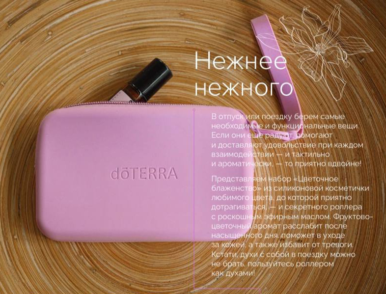 В наборе роллер Магнолия и силиконовая косметичка с логотипом doTERRA.