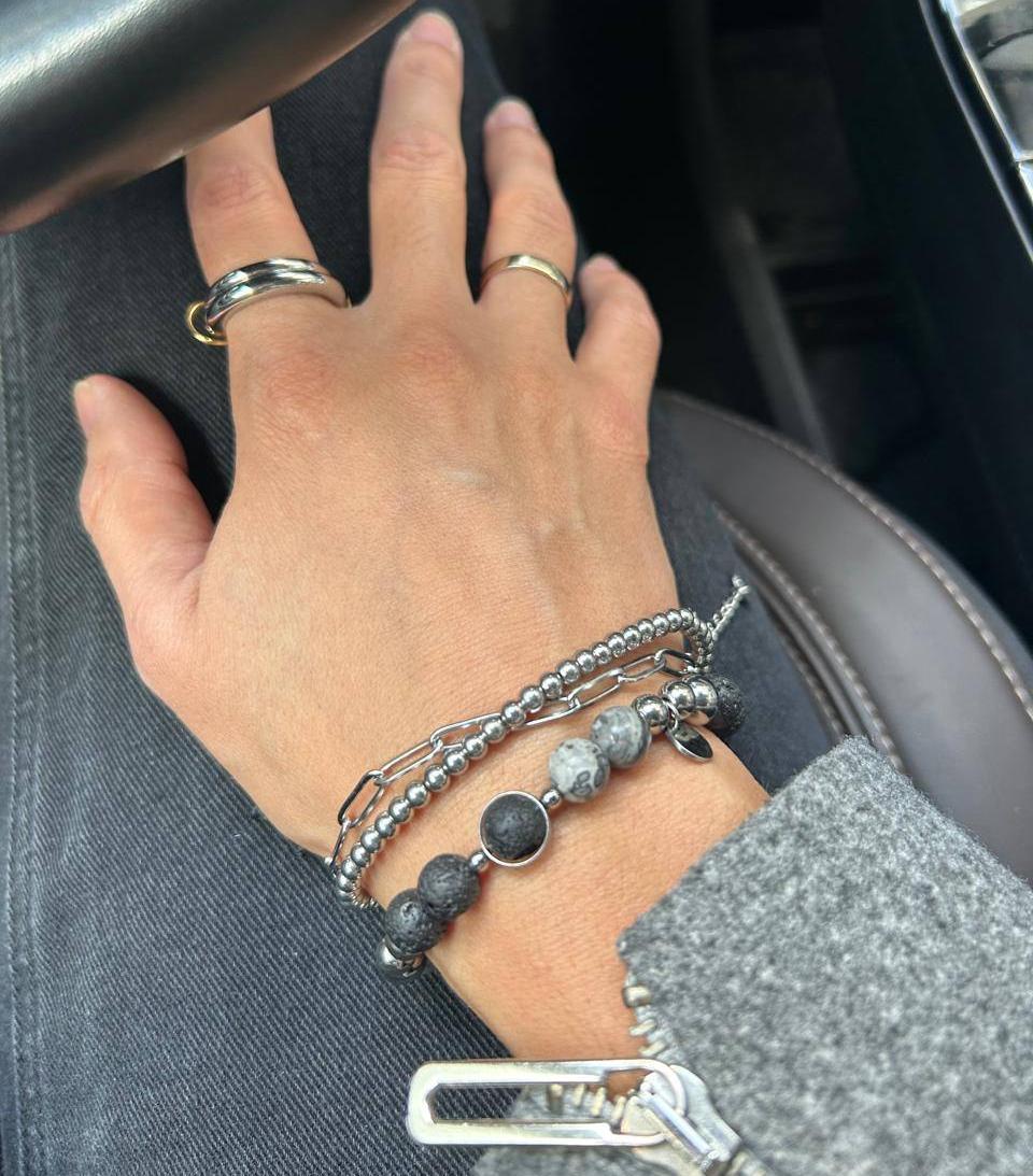 Материал браслетов: лава, сталь