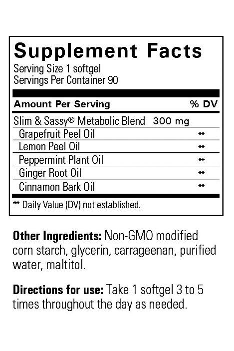 Содержащиеся в смеси Slim & Sassy эфирные масла грейпфрута и лимона, богатые лимоненом, способствуют очищению организма и выводу токсинов, а масло мяты перечной улучшает пищеварение и помогает обуздать чрезмерный аппетит. Масла имбиря и корицы поддерживают здоровье желудочно-кишечного тракта и активизируют обменные процессы. В сочетании со здоровым питанием и физическими упражнениями, смесь Slim & Sassy поможет вам достигнуть своего идеального веса и поддерживать его в течение всей жизни. Капсулы Slim & Sassy - удобные капсулы, которые идеально подходят для использования смеси эфирных масел Slim & Sassy в любом месте и в любое время.